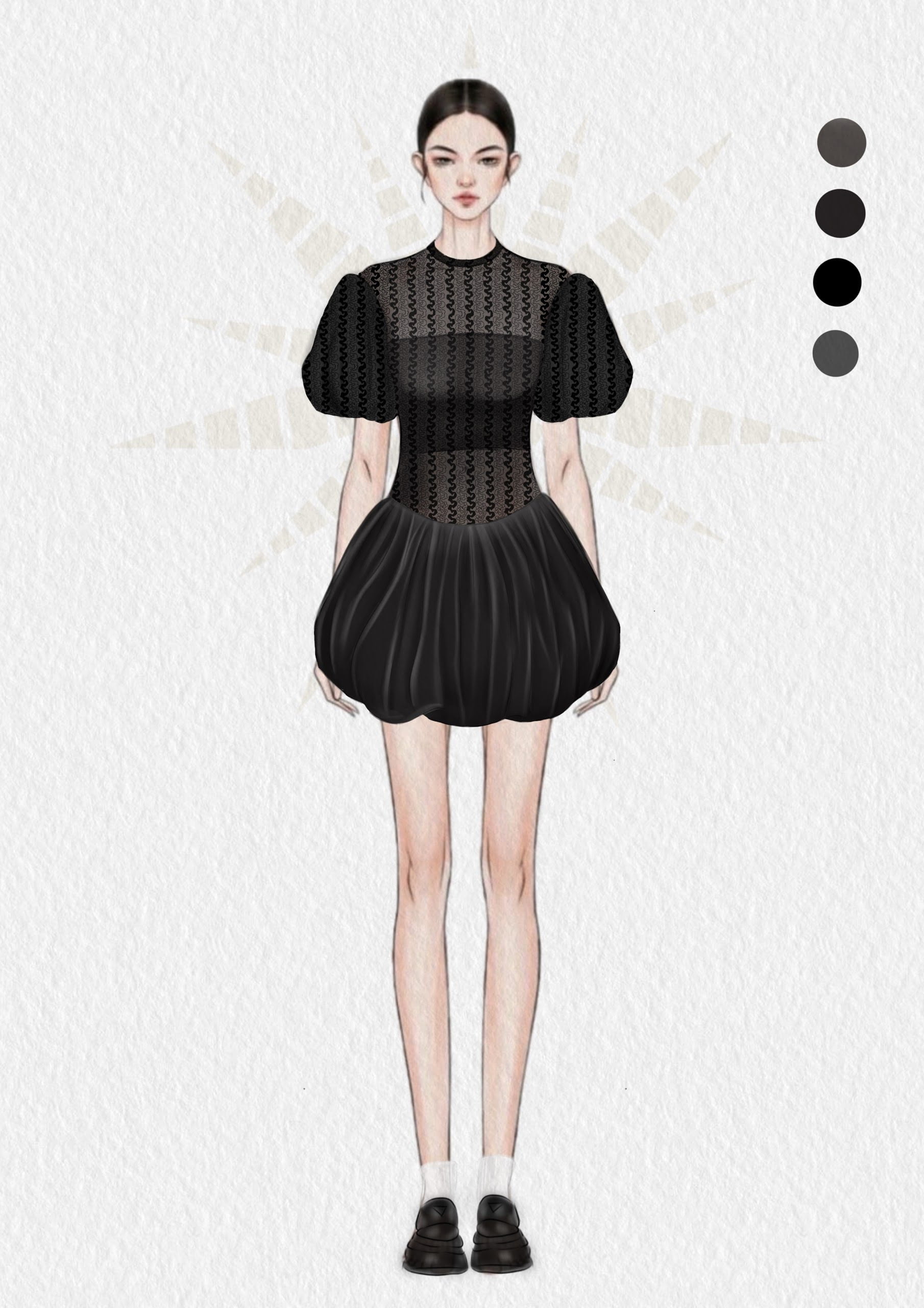 · Chiếc váy được thiết kế phồng ở tay áo và phồng ở cả phần váy, phần áo được ôm vào cơ thể làm tôn dáng người mặc, tạo ra những đường cong cơ thể mềm mại cho các nàng.